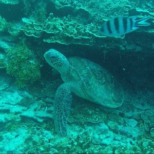 海中で魚たちを間近で見ることでも感動的だったのにウミガメにも3回出会うことができました。