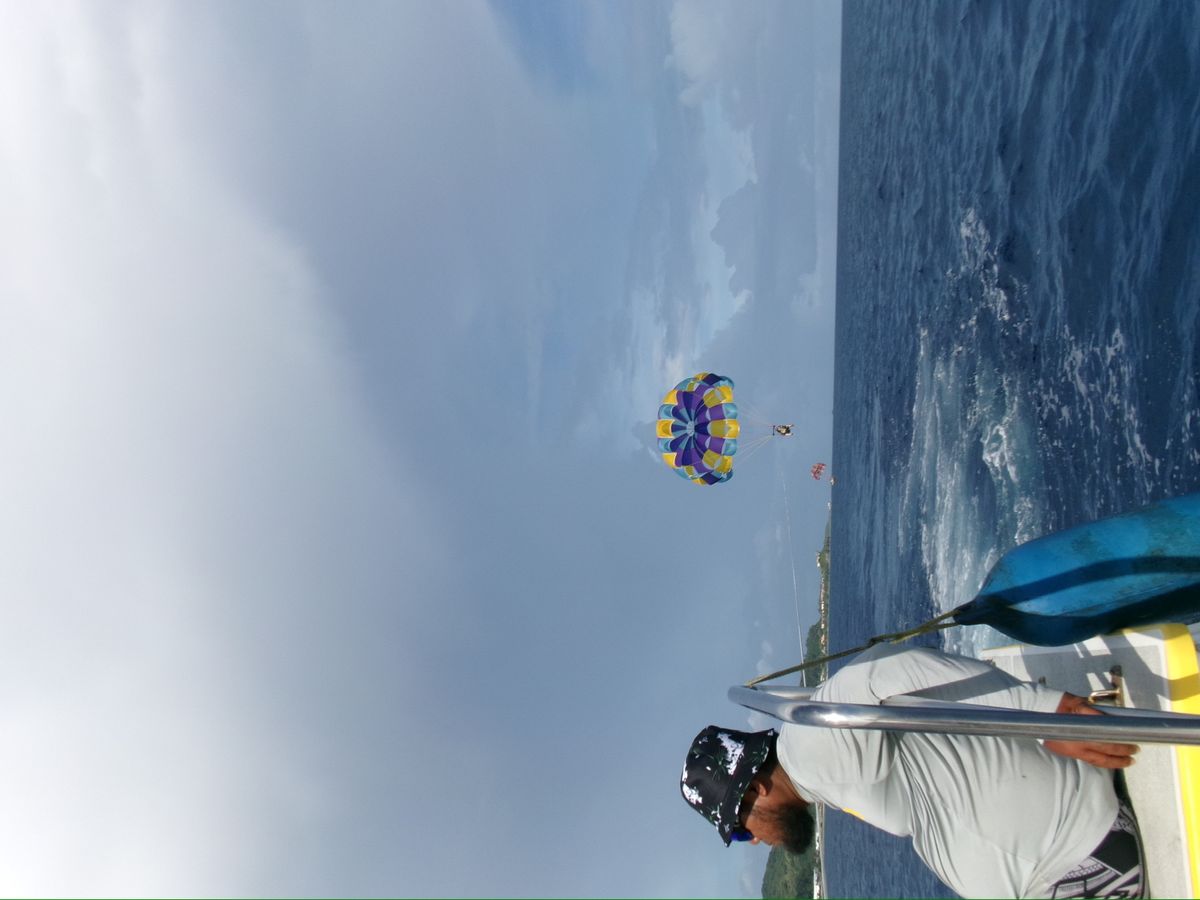 今回初めてパラセーリングとダイビングをさせてもらいとても楽しむことができました。魚を間近で見ることができました。私が海で携帯を無くしてしまった時もスタッフさんが全員で捜索してくださり見つけることができました。アクティビティ以外の面でもとても親切に対応してくださいました。