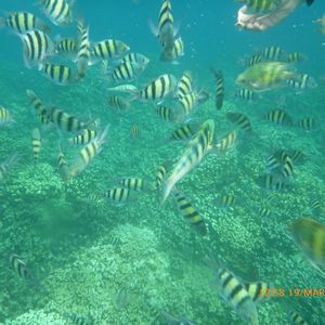 ももこ様 この度はご参加ありがとうございました。お魚に指をかまれてしまったとのこと、痛かったですね!このエリアに集まる魚の種類やサイズからみて大きな問題はないと思われますが、何かございましたらいつでもご遠慮なくスタッフへお伝え頂ければと存じます。ここピティ湾は海洋保護区に指定されているだけあってグアムの中でも随一のシュノーケリングスポットと自負しております♪ また是非是非、グアムとフィッシュアイに遊びにいらして下さい!一同、心よりお待ち申し上げております☆