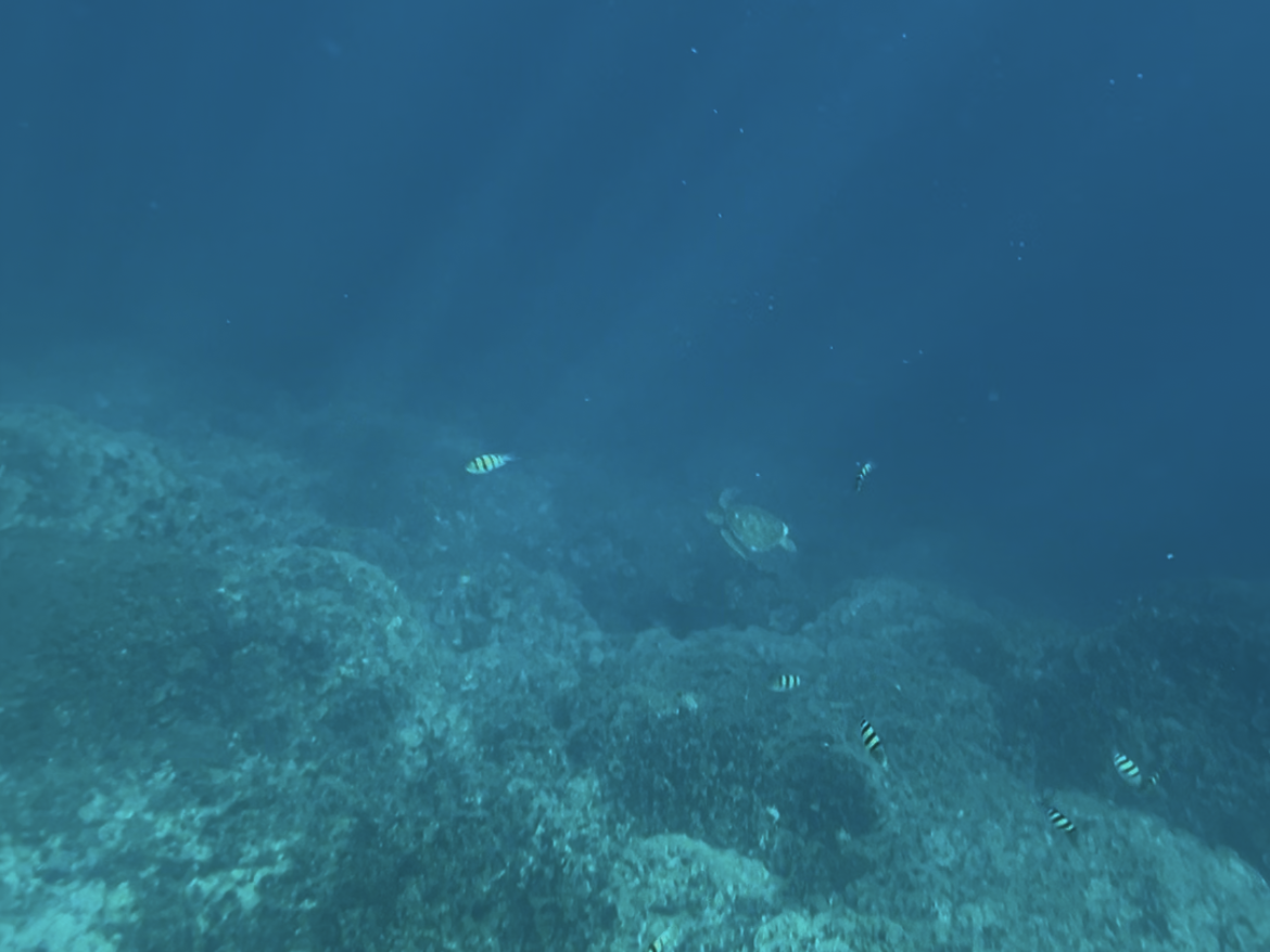 シュノーケリングが始まり、ウミガメを見つけたらすぐに教えてくれて、潜って近くで写真を撮ってくれました。