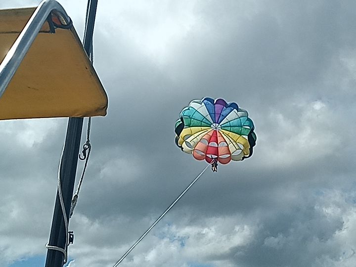パラセイルはかなり風が強い中🌪️大丈夫か?と思いながらだった。日本では間違いなく中止になる強風だったけどものすごいスリルを味わえました。