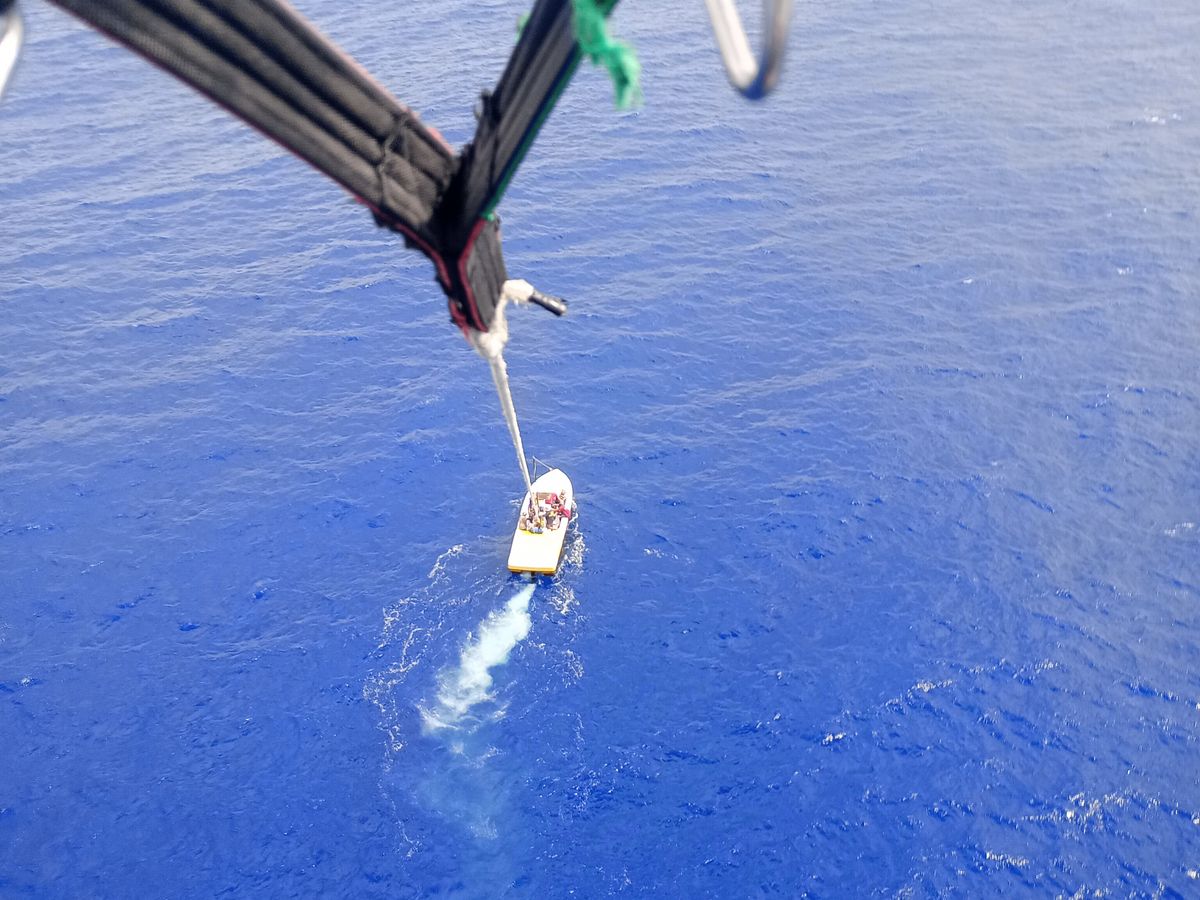 沖まで出ると、順番にパラセーリングで空高く舞い上がりました!