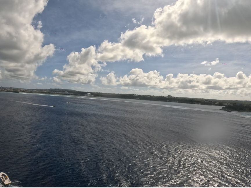グアムの島に向かって飛んでいるような気分を味わうことができます。