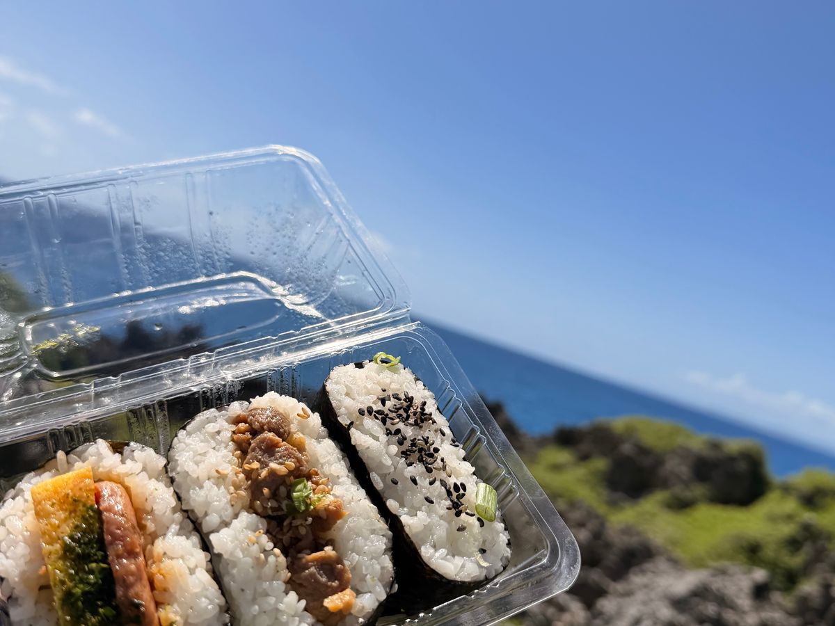 沢山歩いて泳いだ後の、絶景を見ながらのおにぎりはとっても美味しかったです!