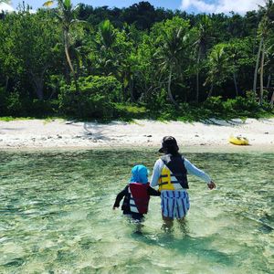 当日は天気晴朗なれど波高し、しかしその週はイルカが見られない日も続いている、との事で少し心配の出航でした。船員さんたちは日本語も上手で色々な冗談を交えながら船を進めてくれます。途中でウミガメが顔を出していたり、日本の海との違いを十分に感じられました。結局イルカの群れにも会え、大満足でした。ファイファイビーチ は車で30分ほど移動し10分ほど崖地の横を歩きます。一部急ですが、子供達は楽しみながら行けますが、未就園児一名は父が抱っこしました。ヤシガニがいますので、お子様注意。水以外はリゾート価格の飲み物。食事はワンプレートの肉とご飯。子ども達は結構残しました。海は遠浅でぬるい。むしろ温かい海水でした。魚はたくさんいます。小さいお子様でも安心ですが、少し大きいお子様には物足りないかな?総じて一日を十分に楽しめるツアーです。少し高いけどw