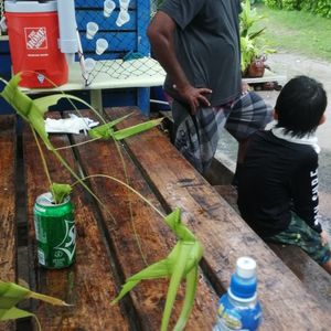 ファイファイビーチで働くお兄さんたちが、ヤシの木の葉で魚を作ったり、バラを作ったりと雨でも楽しませてくれました!