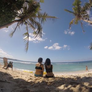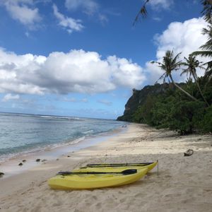 今回は、どこかのんびりできるビーチに行きたい!と思い、ファイファイビーチにしてみました。2018.1.1泳ぎ初めです。グアムリーフホテルからは車で10分もかからないくらい。あまりに近くて拍子抜け。車を降りて少し道なき道を歩いて抜けるとそこはプライベートビーチ。私たち以外に3組、計8人なのでゆっくりできました。シュノーケリング、ジャングルの中をバギーで走行、洞くつ探検など遊びも盛りだくさん。もちろん何もせず、のんびりしててもOKです。ランチはチキンとポークのお弁当、美味しかったです。1つ注文をつけると、シュノーケルは勝手にどうぞではなく、ガイドさんが同行してくれたらもっと良かったかな。また行きたいです!