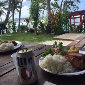 本当に街の中心街から近くてお迎えのバスに乗ると、あっという間についてしまいます。やや天気が曇り空でしたが、それでもお魚の餌やりで沖へ連れて行ってもらいお魚をたくさん見ることができました。お昼は、バーベキューランチと追加でビールをたのしみました。ビールのおつまみにランチ入っているソーセージぴったりでした。今回は弾丸グアムツアーだったため買い物時間が欲しく早めに切り上げてしまいましたが、次回はゆっくり楽しみたいです。