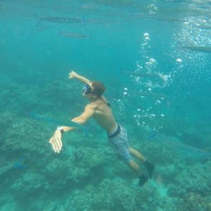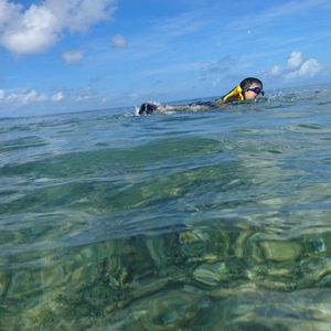 その後、スノーケリングに参加しました。魚の多いスポットまでスタッフの人がうきに乗せて引っ張って連れて行ってくれて楽ちんでした◎パンをたくさんあげて、魚がいーっぱい集まってきて楽しかったです。水中カメラを持って行っていたので、スタッフの方に撮影をお願いすると、わざわざ深く潜って下から撮影してくれて、とてもいい記念になり嬉しかったです。