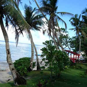 ファイファイビーチはアメリカ政府認定の文化遺産に登録されている為、水道は地下水を電力は必要最低の小型電力機などを利用している為、他のリゾート施設の様に水洗トイレやクーラーが利いた着替え室、温水シャワー等の設備の設置は自然破壊に繋がるという事で行政から禁止されている事もあり、過去にこの地で生活を行っていたチャモロ人が残してくれたこの地を引き継ぐ為にも自然に優しいエコーツーリズムとなっています、非現実的で今の生活環境には抵抗があるかと思いますが、そんな不便さの中でゆっくり時間が過ぎてゆくこの実感と、手に入らないものは無いこの世の中、時間に追われるストレス三昧の毎日・・・・ここでは本来の人間らしい生活を思い出させてくれる空間の演出を行わさせて頂いています。心行くまでごゆっくりとミクロネシアの大自然をお楽しみくださいませ!