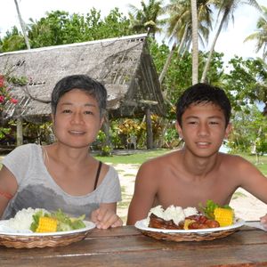 ファイファイビーチのスタッフは日本語の話せる2人を除くと殆どがミクロネシアの離島の出身者なんです。彼らは特別な事を行っている訳では無いのですが幼い頃からの生活習慣をそのままファイファイビーチで行って頂いて・・・大自然と共存した遊び方をよく知っています、私たちも時には勉強になっております。又、家族(子供や老人)を大切にする人種!?、お子さんや年配の方々がツアーに参加頂くと、自然と体がコミュニケーションを取りたがるのかもしれません!そういった事もあり、ファイファイビーチへ滞在中は同じ私たちの家族として対応させて頂いております。