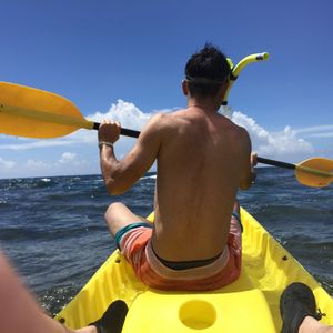 その後は、2時、3時、4時のグループに分かれて帰ります(時間はお昼に希望をとってもらいます)。帰る時間まではビーチで寝転んだり泳いだり。だんだん人が少なくなるので、残っているとまさに自分のプライベートビーチ状態になります。この時間に息子がカヤックでだいぶ遊んでいました。