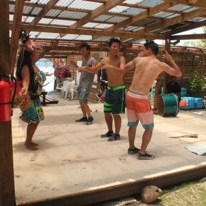ランチのバーベキューもボリューム満点。お腹を休めてる間ヤシの実のデモンストレーションにダンスショー。ダンスは見るだけでなく、みんなで参加。