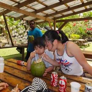 他のプライベートビーチと迷い、送迎時間が選べてアクセスの良いこちらにしました。オンワードお迎え10時で朝も余裕があり助かりました。駐車場からビーチまでは抱っこで大変でしたが、歩けるお子さんなら景色を楽しめると思います。子連れは私たち家族のみで、スタッフの皆さんがフレンドリーで、他の参加者の方々と上手く全体をまとめてくれたので、子連れでもとても和やかに過ごすことができました。洞窟ツアーには夫のみ参加し、私と娘はハンモックでお昼寝しました。写真も購入して良い思い出になりました!