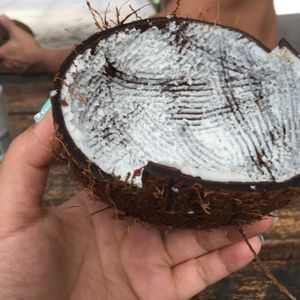 ランチはワンプレートランチでチキングリル、生野菜、フランクフルトのモリモリで美味しかったです。ココナッツのデモンストレーションでは、生のココナッツウォーターを飲んだり削ったココナッツを食べたりしました。食事後の洞窟探検では真っ暗で足場の悪いところをドキドキしながら歩き、洞窟の冷たい水にビックリ!! 小2の娘がかなりビビッていたので、小学生以上でないとかなりキツイと思いました。