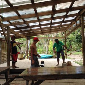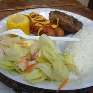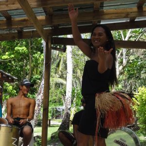 BBQランチはどこでもでてくるものでしたが、本物の椰子のみから、ジュースを飲ませてもらったり、葉っぱの工作をしたり、楽しく過ごしましたよ。いいにおいにつられて、森から、野生のイグアナが出てきました。かわいかったです。