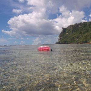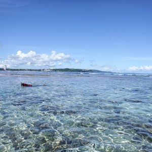 タモン湾より透明でブルー!ブルー!人数が限られてるからすんごくプライベートビーチ!シュノーケルをいつまでしてても全く飽きずお魚もたくさん!ハンモックに揺られたり、右には恋人岬も見えます。洞窟も新鮮、現地スタッフの方もフレンドリー、ガイドの方は日本語が話せるで何も問題はないです。とにかく本当の意味でリゾートに来たんだという気持ちを心のそこから感じさせてくれました。子供連れ、親子三世代、若いカップル、友達同士、私たちのような三、四十代夫婦、全ての年代に絶対満足感を与えてくれると思います。こんなに心が満たされると思いませんでした。グアムに行ったらまた参加したいです。因みに三時頃には急に潮がひきます。そしたらハンモックでゆっくり。帰りは選べるから行ってみて選んで下さい。とにかくオススメです!