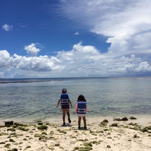 残念ながら悪天候だったため、子供は怖がって海に入りませんでした・・・