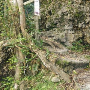 お迎えの車を降りてからビーチまで、少し険しい道を歩きます。