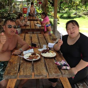 午前中にシュノーケリングをしましたが、きれいな魚がたくさんいました。食事は焼き鳥風串焼きを含む肉料理とサラダ、ライスのセットでなかなか美味しく子供もしっかり食べていました。スタッフの方々にアクティビティーのすべてを体験して欲しいという意気込みが感じられ好感を持ちました。チャモロ文化も効率よく且つ楽しく学べ、施設も清潔でした。また、自分で作るお土産も良い思い出になりました。