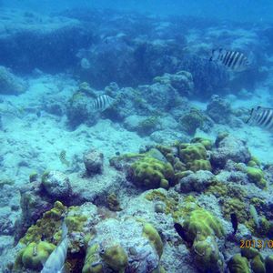 ここの海は、底が砂地と平たい岩と、サンゴ礁で出来ているので