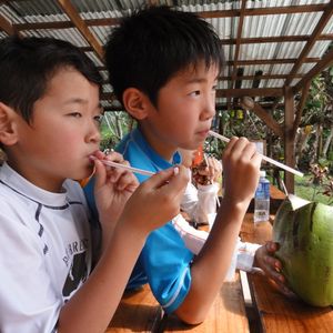 魚のえさやりも、ココナッツ割りもとても楽しめました。