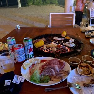 食べ放題で、飲み放題を➕プランにしましたが、お肉、お魚、エビ、どれもすっごく美味しかったです。前日も、BBQを飲み放題プランでしましたが、このツアーのお肉の方が断然美味しく、柔らかかったです。飲み放題もアサヒの生ビールがあって、最後でした。やっぱり、生ビールって美味しいって、すごく感じました。