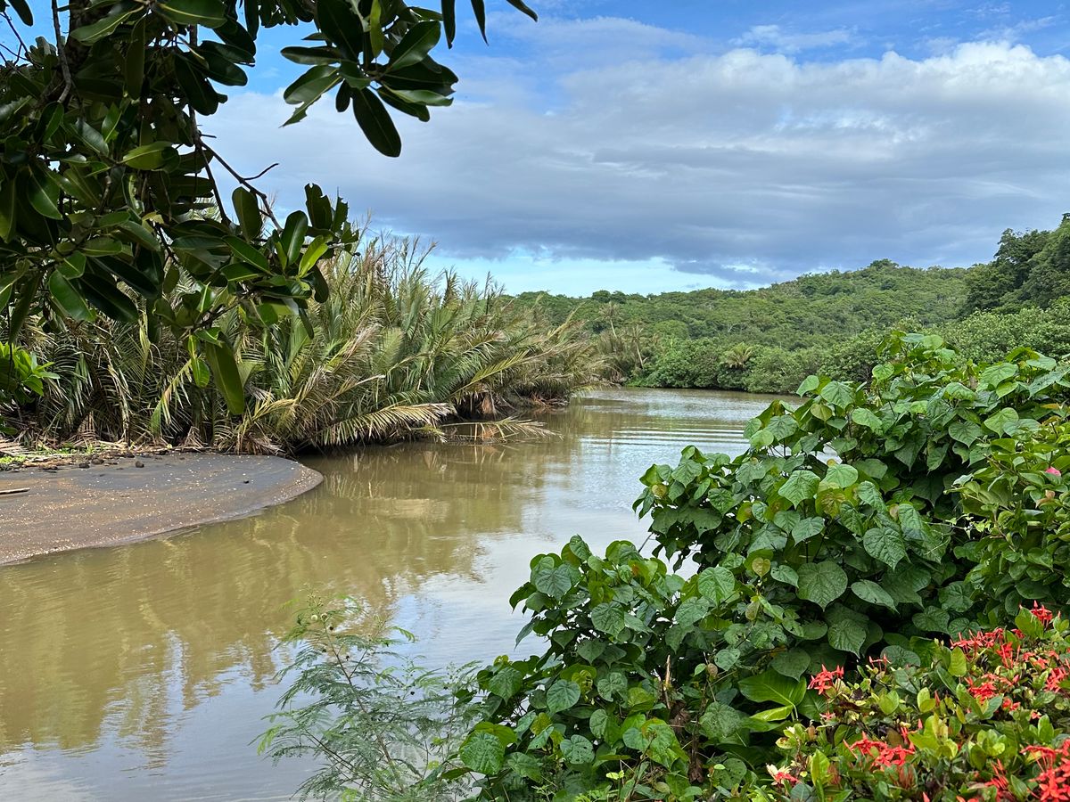 台風の影響で予約がキャンセルになり、翌日に再度予約。途中で雨が降ったりしましたが、何とか行くことができました。ジャングルの道のりは行きが下りで帰りが登りでした。途中岩だらけの道もあり思ったよりもハードでした。ガイドさんが下りのほうが大変と言われ、確かに下の方が怖さもありましたが、個人的には上りの方が大変でした。雨が降っていて道は歩きにくかったのですが、その代わり暑すぎず虫もあまりいませんでした。洞窟の水が溜まっているところは本当に綺麗で、神秘的でした。ライフジャケットを貸してもらえたので、泳げない人も安心です。海岸は、台風の影響で波がとても強くて迫力満点でした。ガイドさんにここで昼食を食べていいよと言われた時は驚きました笑スリルありすぎる笑