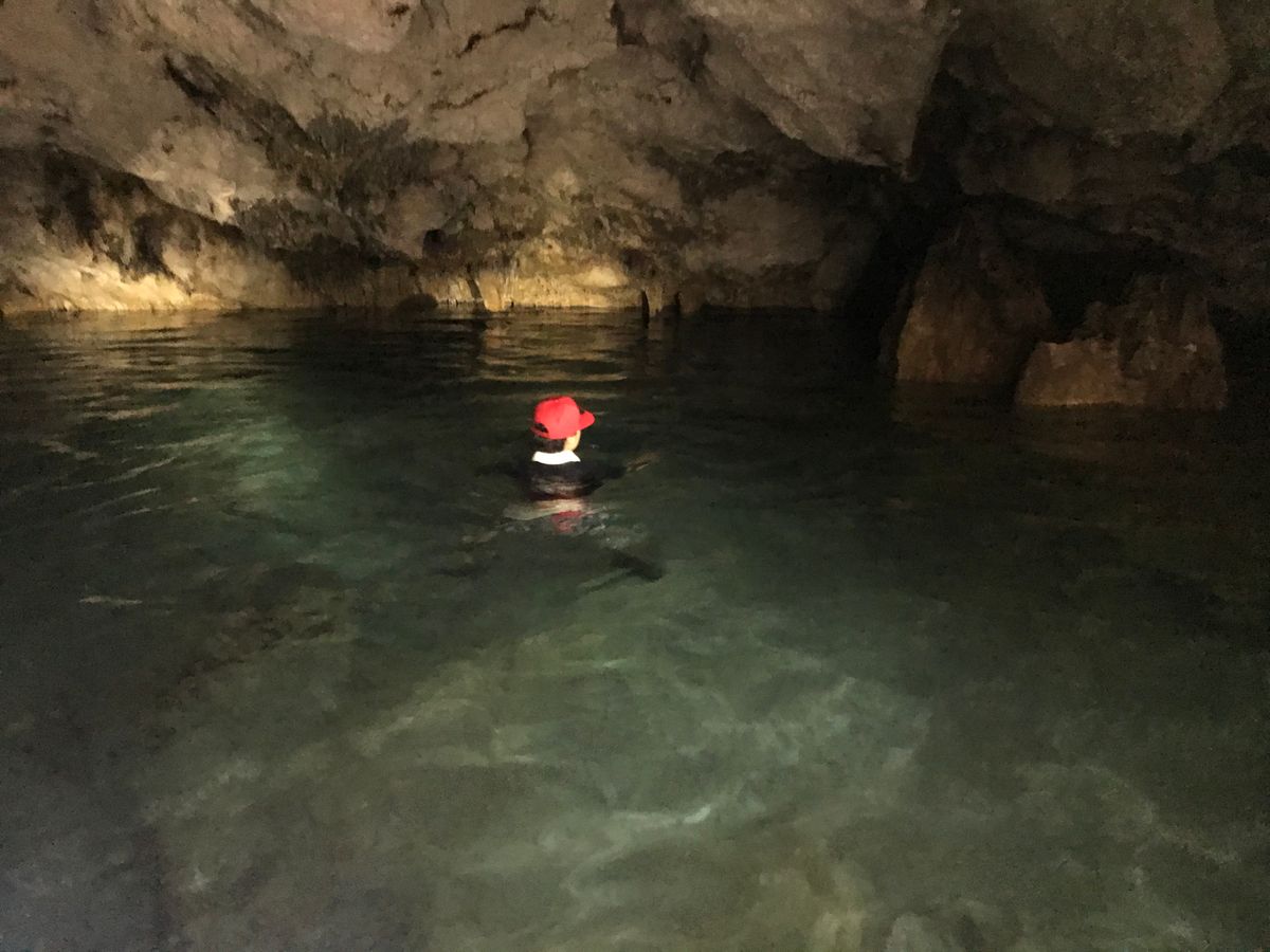 水は冷たかったけれど透明度が高く、洞窟内は広くてとても綺麗で神秘的でした。