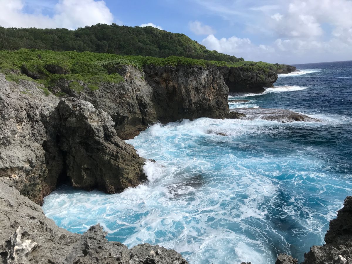 ジャングルの後に素晴らしい景色。1時間のトレッキング後に綺麗な海が見えました。景色を眺めながら用意していただいた美味しいおにぎり(鮭・梅)とオレンジを食べて元気復活!その後の神秘的な洞窟。今まで何回もグアムに来ましたが、また新しいグアムの魅力を発見しました。