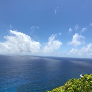山登って、広がる青い海は沖縄とは違う魅力でした。ウミガメは見えませんが、いそうな気がしました。帰りの洞窟での水浴びは最高!