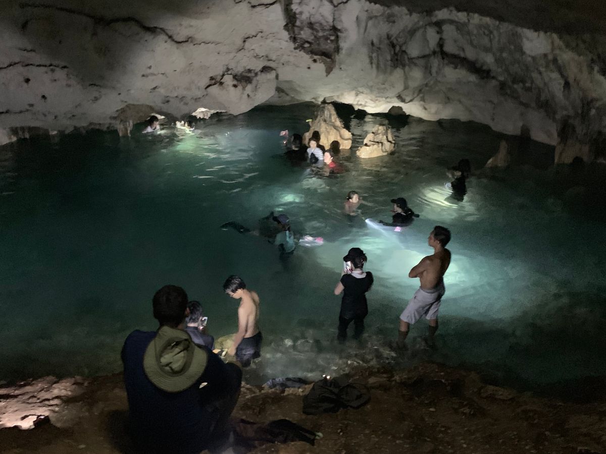 洞窟で泳ぐ体験は、これまで経験した事がなかったので、子供たちはおおはしゃぎで、凄く喜んでいました。