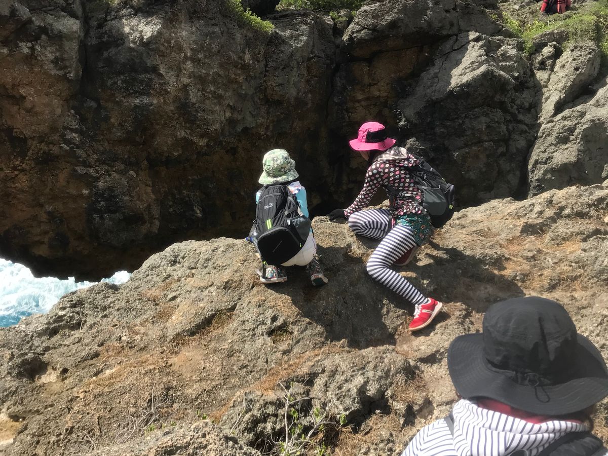 アルフレッドさんとみちさんとりおさんのガイド3人がみんなのペースに合わせてくれて楽しく声かけしてくれ子供たちはひょいひょい急な岩場もすり抜けて行き楽しそうでした。
