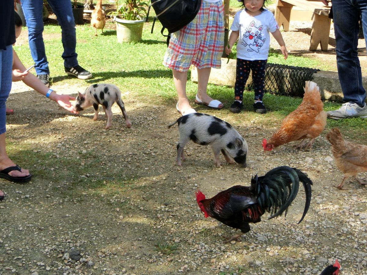 ウリ坊も2匹、ニワトリと一緒に足元を歩き回っていて、かわいかった。