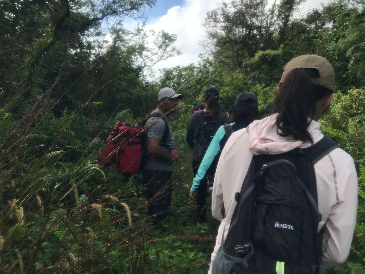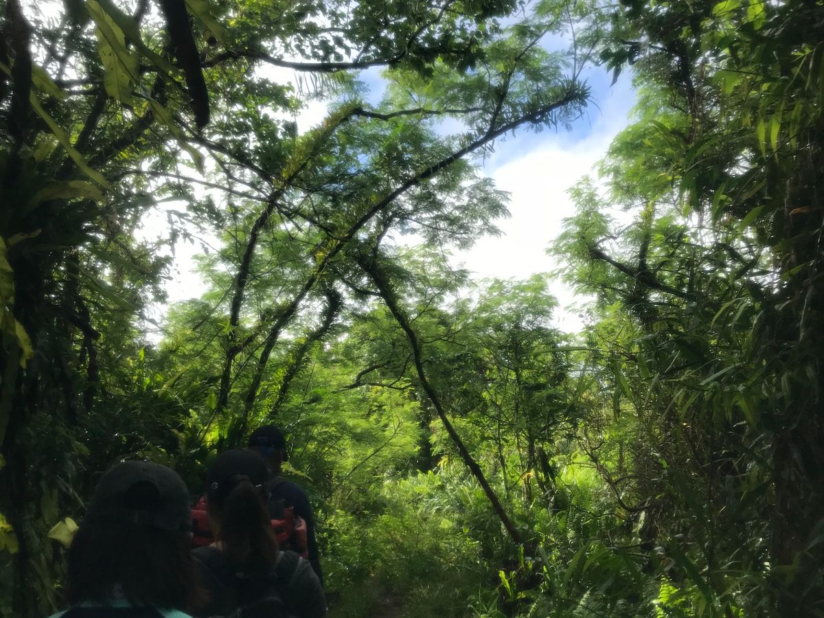 服装。 着替えを持って行って着替える方もいるそうですが、参加した日はだれも着替えませんでした。濡れた状態で海まで歩いて、お昼をたべて帰るころにはだいたい乾いていました。速乾性のものを着用されることをおすすめします。シダくらいの草木がたくさんあるところも通るので、枝や葉が脚にあたるのが気になる方は長ズボンのほうがいいかもしれません。