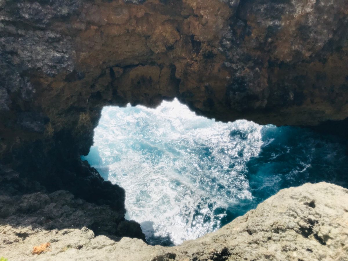 合計3時間ぐらい、恐竜がでてきそうな熱帯のジャングルのようなところを歩いていたと思います。足元だけでなく頭上も注意が必要で、歩くときは真面目に歩いていました。汗もたくさんかき疲れましたがそのぶん洞窟や海岸で見た景色はとても素晴らしく忘れられないものとなりました。
