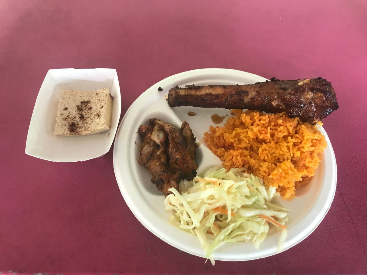 昼ごはんはリブとチキンで味付けも日本人向けておいしかったです。