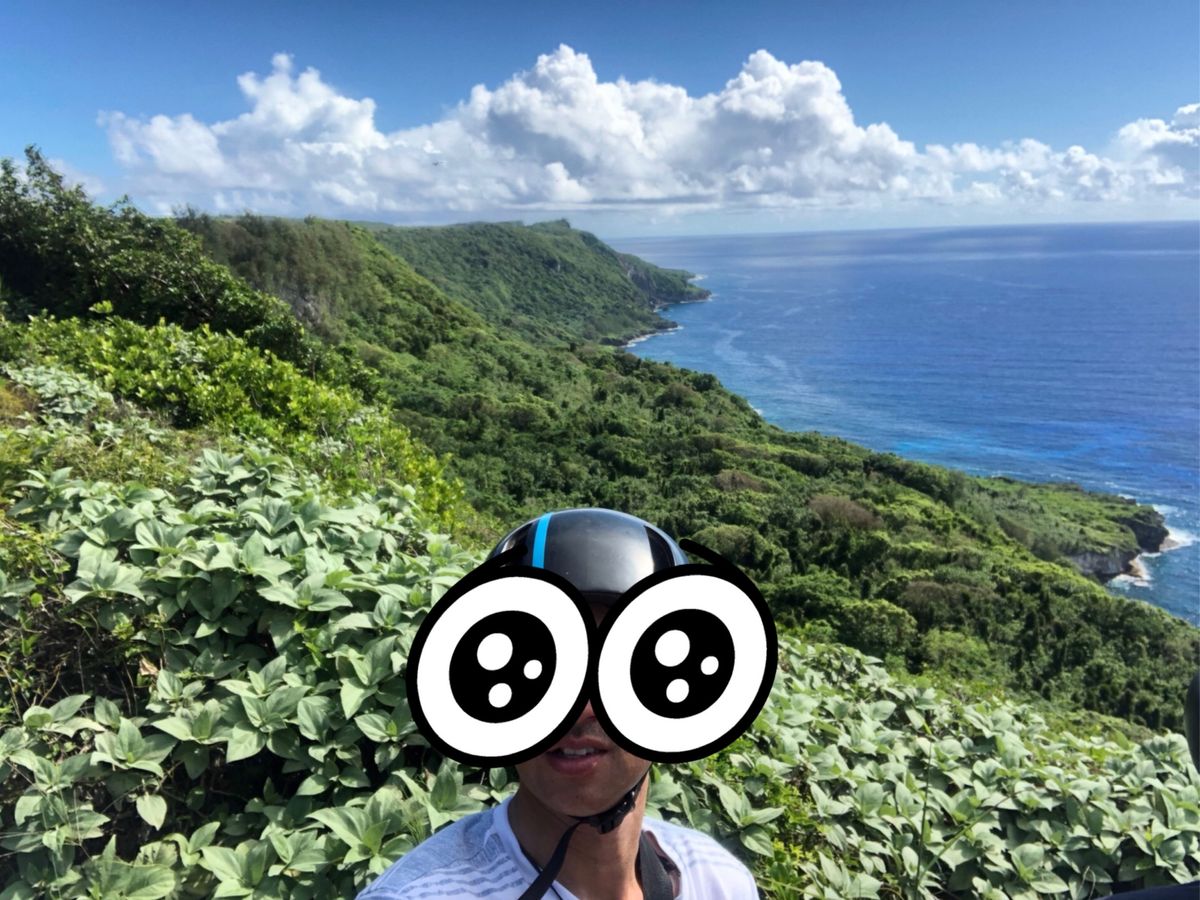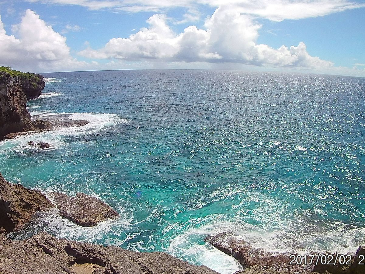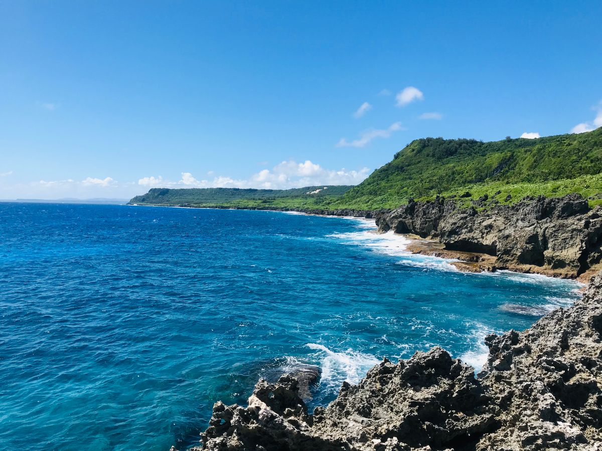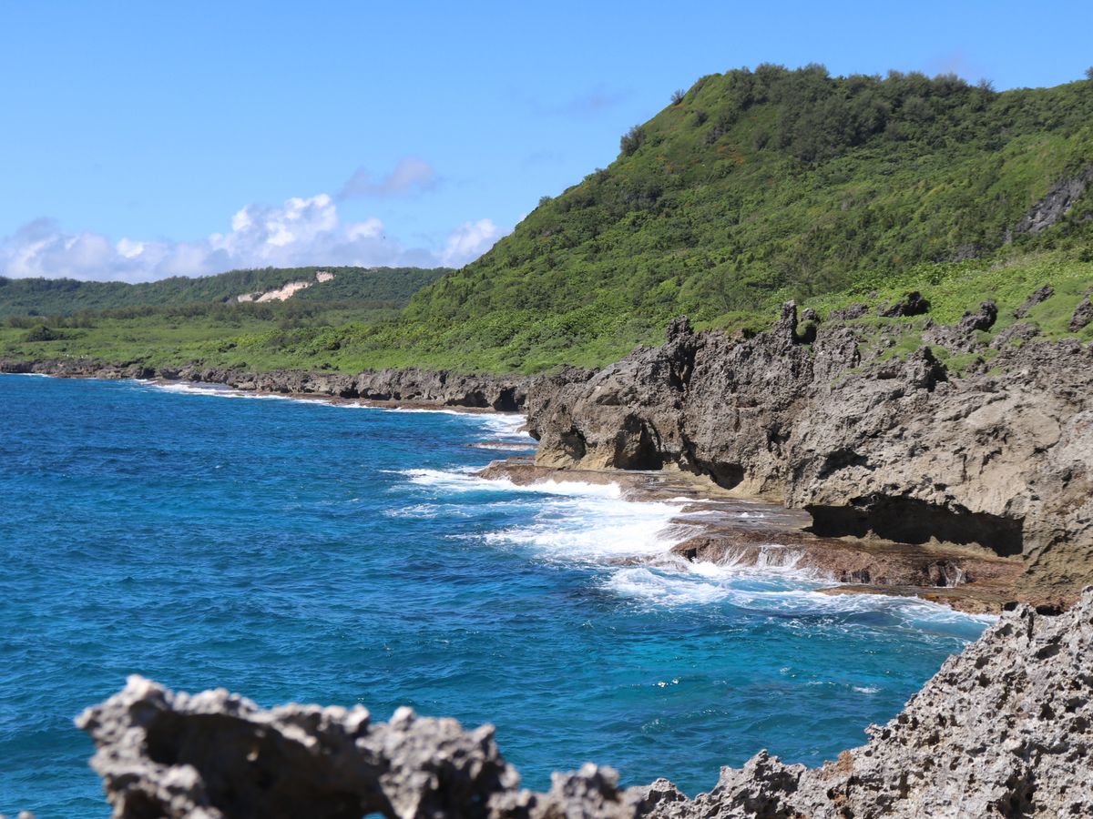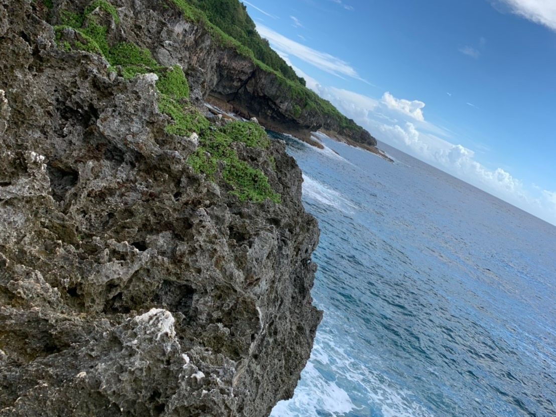 チャモロ人の高床式住居の遺跡などをガイドしてもらいつつ、海が見える岸壁に到着すると、海のあまりの青さに歓声が出てしまいました!