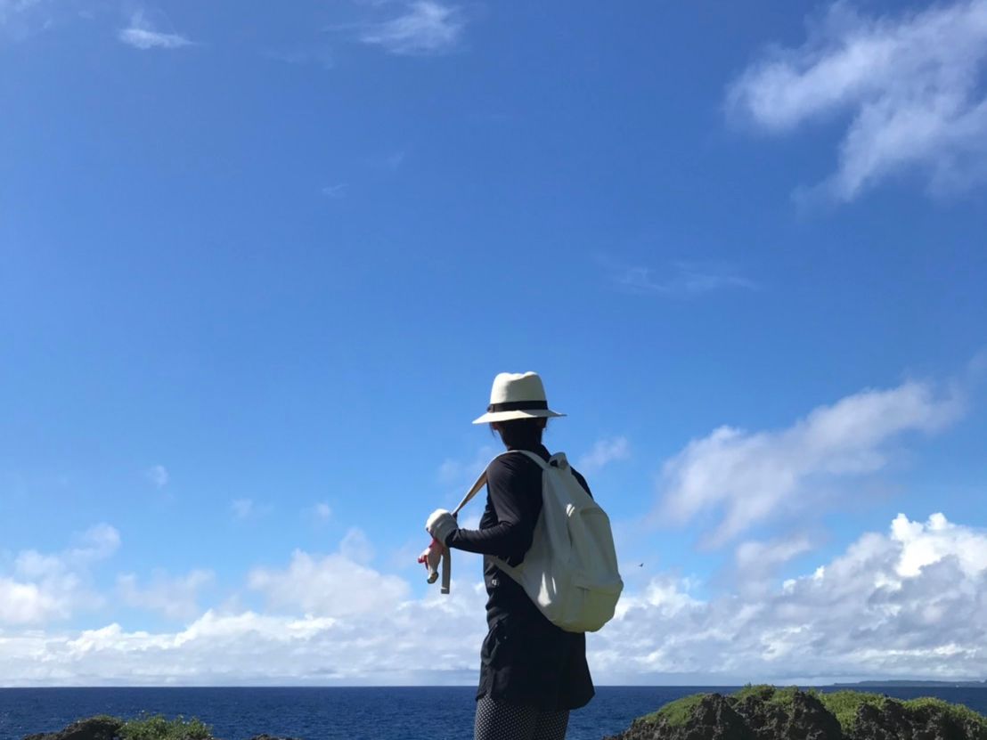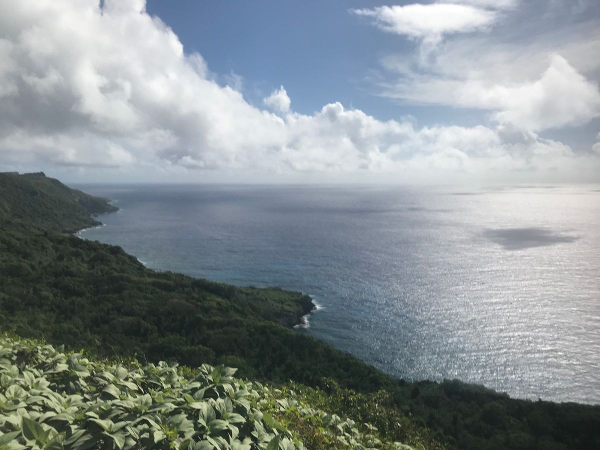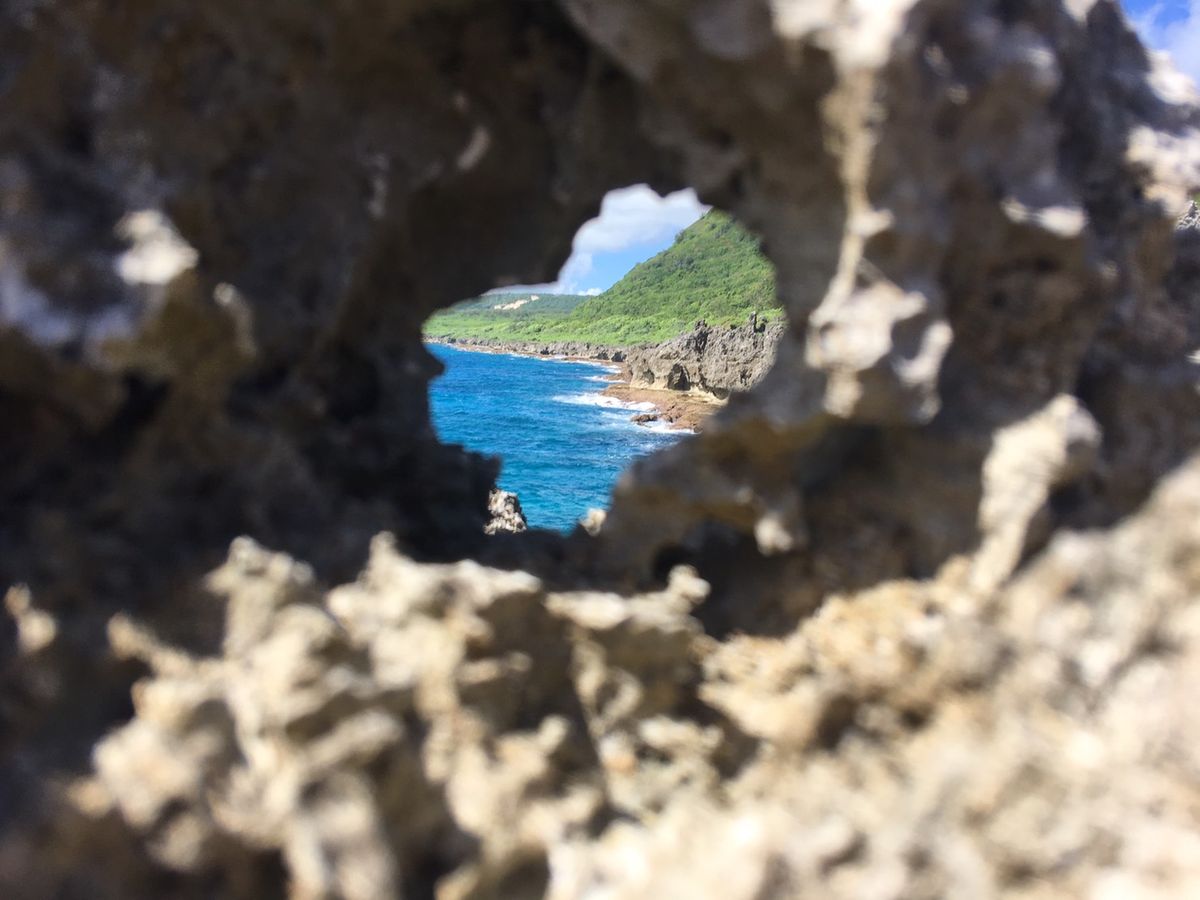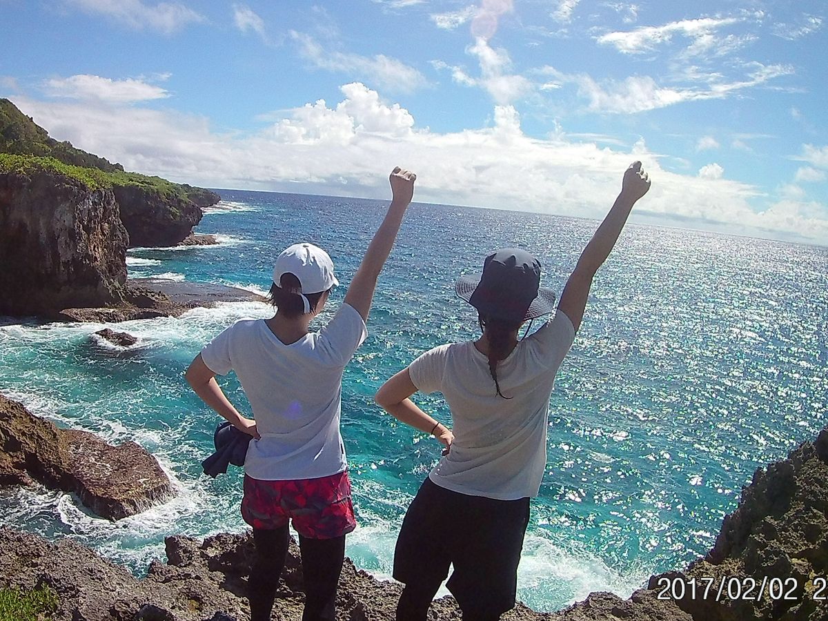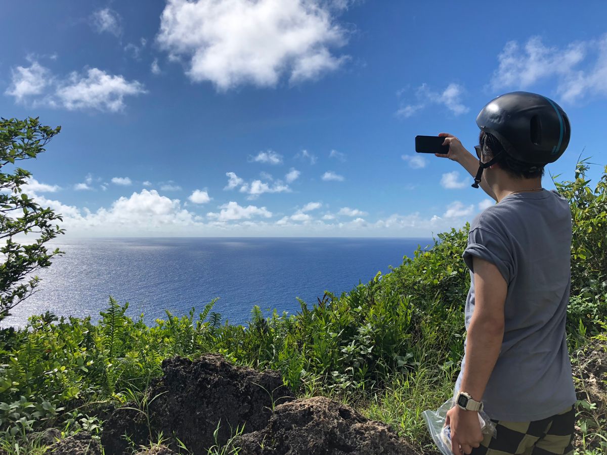 チャモロ人の高床式住居の遺跡などをガイドしてもらいつつ、海が見える岸壁に到着すると、海のあまりの青さに歓声が出てしまいました!