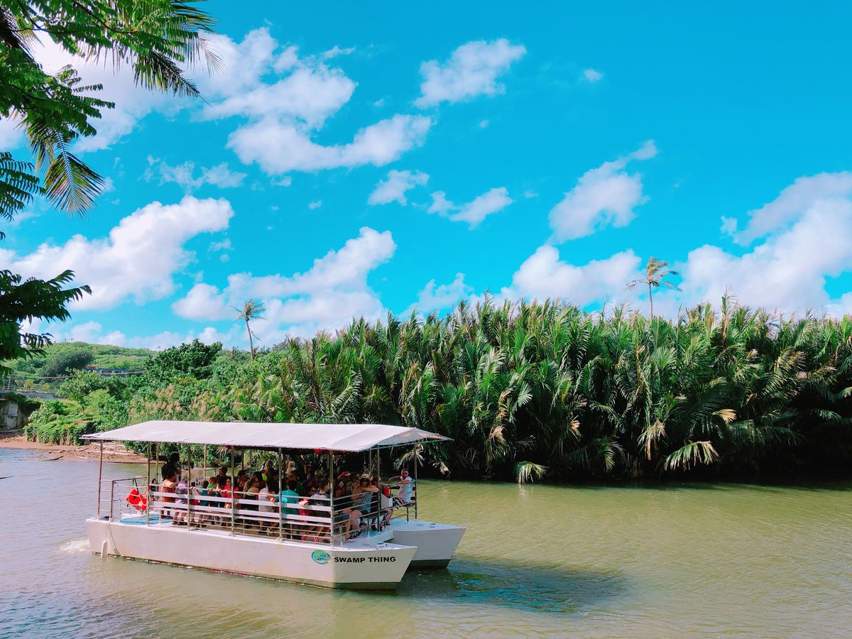 予約していた日程は、台風が来てしまい旅行会社の方でキャンセルになりました。旅行会社に電話したら、次の日に変更できるとのことで、急遽スケジュールを組み直して翌日参加しました。前日とはうって変わって、良い天気に恵まれ、ジャングルクルーズ日和となりました。
