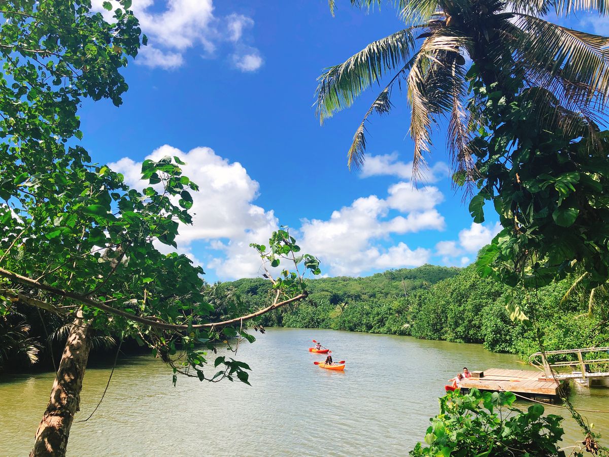 グアムといえば、ビーチと買いものしかないイメージでしたが、海は見飽きたなぁという方にはとてもおすすめです! うっそうと茂ったジャングルの川を自力でこいで進んでいくのは、アドベンチャー感があるしし、途中に立ち寄る場所では、チャモロ族の文化にも触れることができます! また、個人的に面白かったのは、戦後20年近くジャングルに隠れていた横井さんが発見された場所らしく、その過酷さを肌で感じられます とはいえ、川は穏やかで、カヤックも難しくありませんし、女性やお子さまも十分楽しめると思います 女性のガイドさんもとても親切で明るい方でした 難点としては、ジャングルなので、仕方のないことですが、ランチの際はハエや虫が大量にいますので、虫除けスプレーは必須です グアムに来たらまた参加したいと思います!
