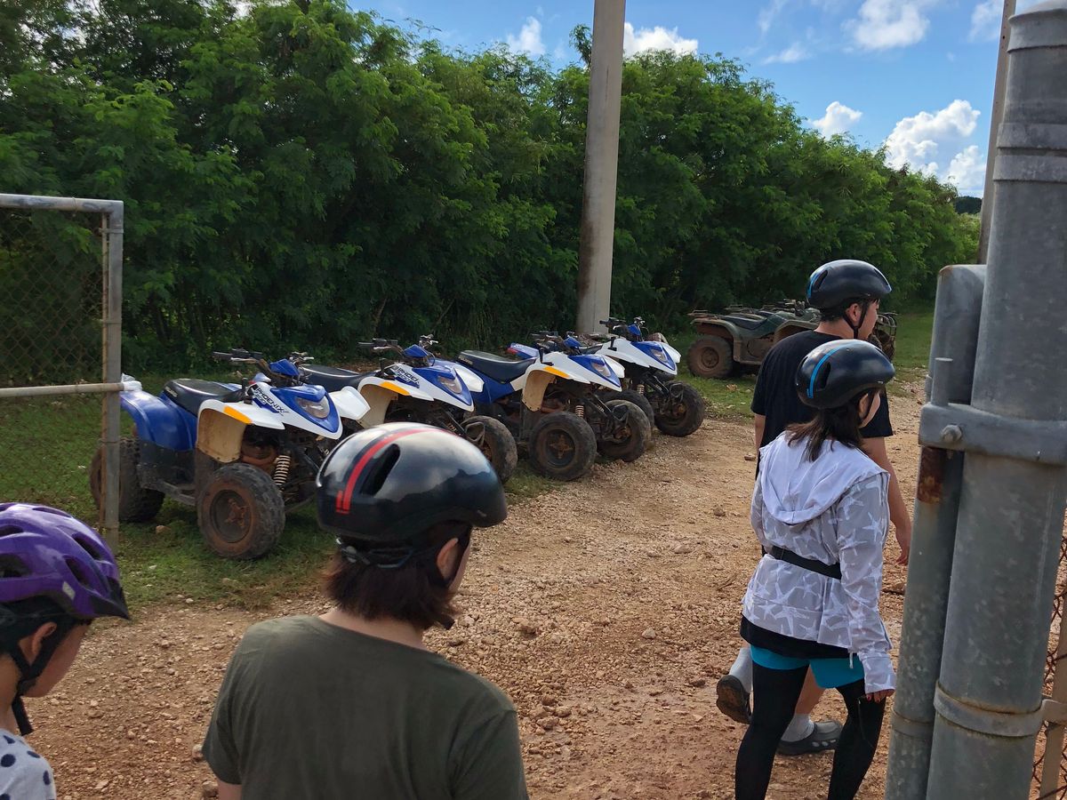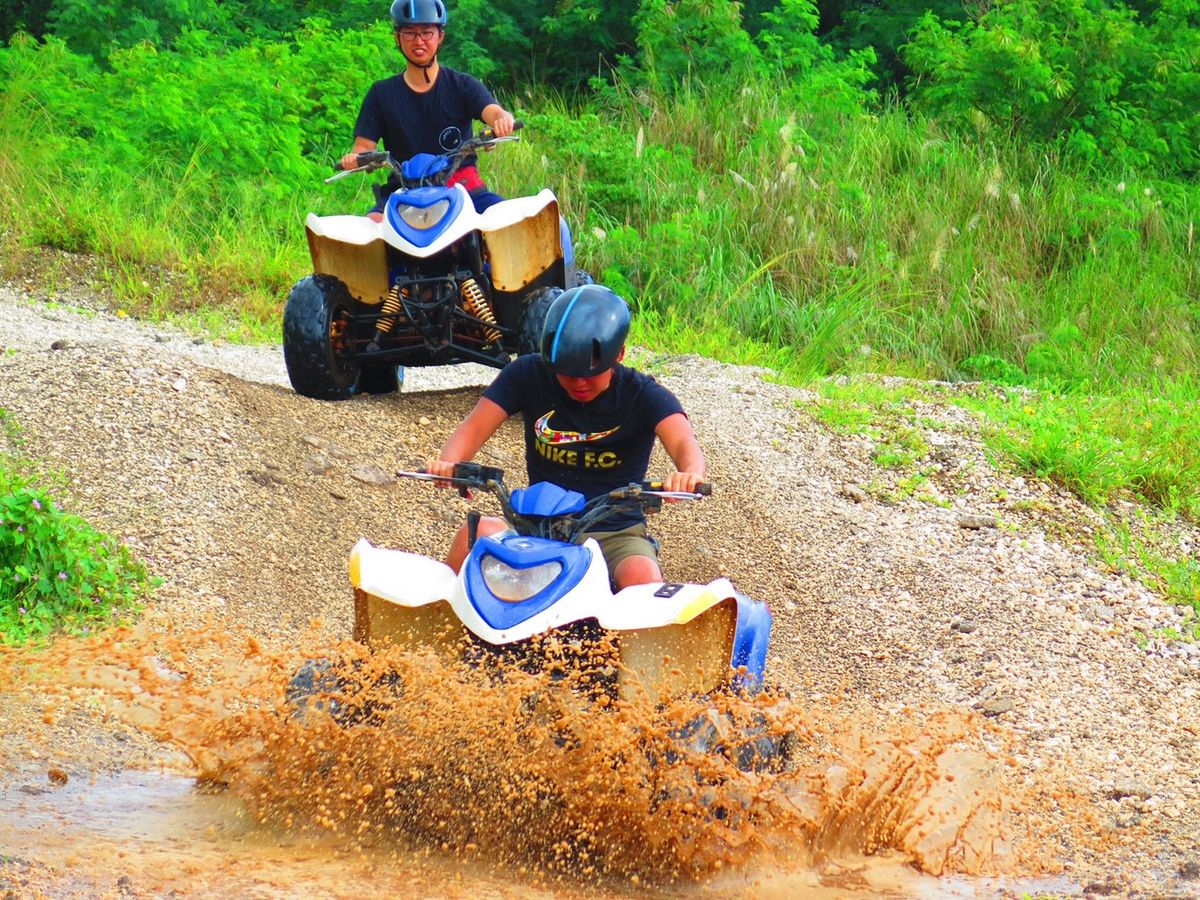 ATV!運転楽しかったです!!車の運転もバイクの運転も普段しないので、一人で運転できるか不安でしたが、簡単な操作でデコボコ道と、泥水の中をあえて、勢いよく入ったり、泥んこになりながら、かなり楽しめました。とりあえず汚れるので、黒いズボンとか汚れても大丈夫な服で行く方がいいです。