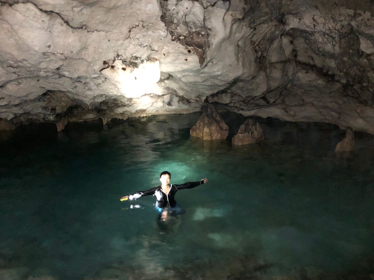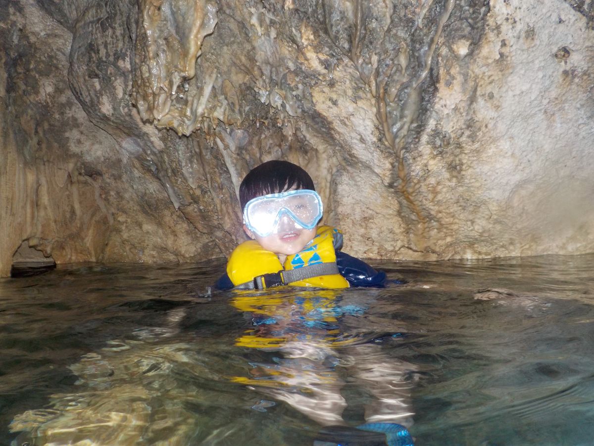 そして洞窟が良い!観るだけじゃなくてプール感覚で泳げるのが楽しい。まさにここでしかできない体験でした。