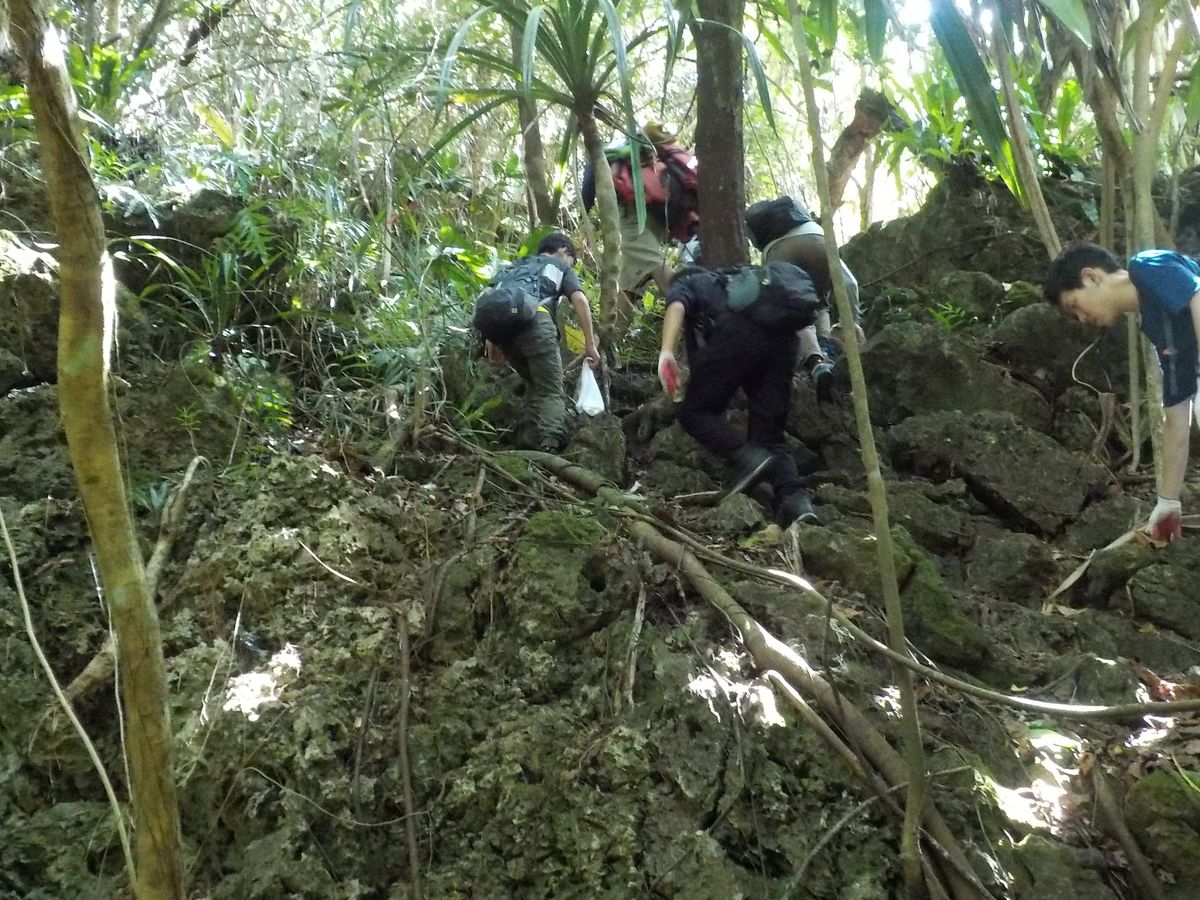 こちらは本気の山登りです。履き慣れたスニーカーもしくはトレッキングシューズで行くことをおすすめします。洞窟内は裸足ではいけないので、アクアシューズがあると良いです。また、リュックもできれば借りた方が良いと思います。洞窟に行く間入口にカバンを置いて行くのですが、見事におニューのリュックが汚れてしまいました。洞窟までの道中下ばかり見て何度も頭上の木に頭を思いっきりぶつけてしまったので、皆さま気をつけてくださいね。途中で食べるおにぎりにはぜひカラマシ?というような柑橘系のフルーツが手に入った時はぜひしぼって食べてください。さわやかになります。65の母と参加しましたが、大変満足しておりました。またグアムに行く際は参加します。