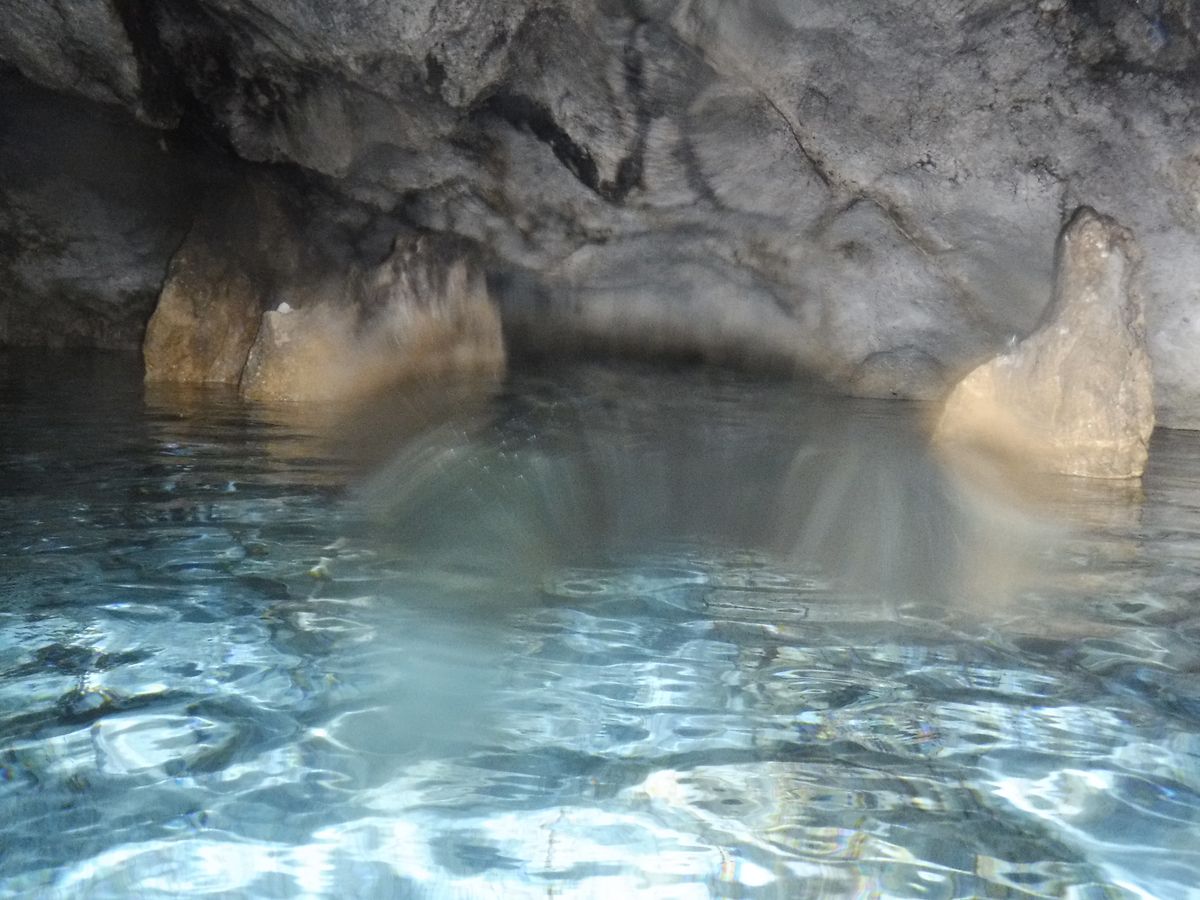 洞窟のプールは、足場がいたいので裸足厳禁!