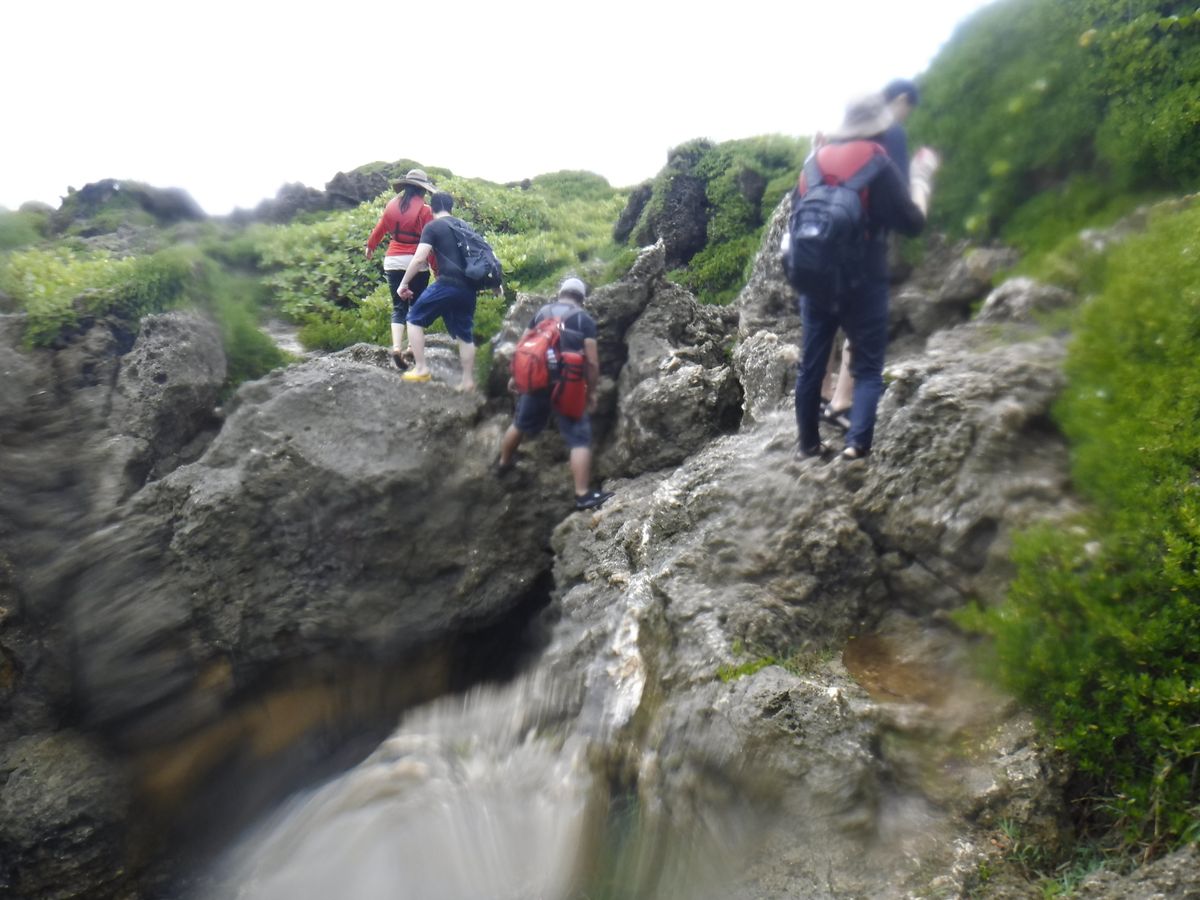 岩場あり、高低差あり、の中を歩くので、少なくともスニーカー以上をお勧めします(^_^;)