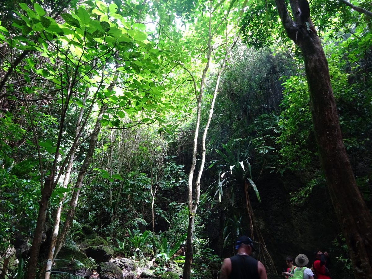 木々の中を歩き、古代チャモロ人遺跡を見学して洞窟の湖でひと泳ぎ!!