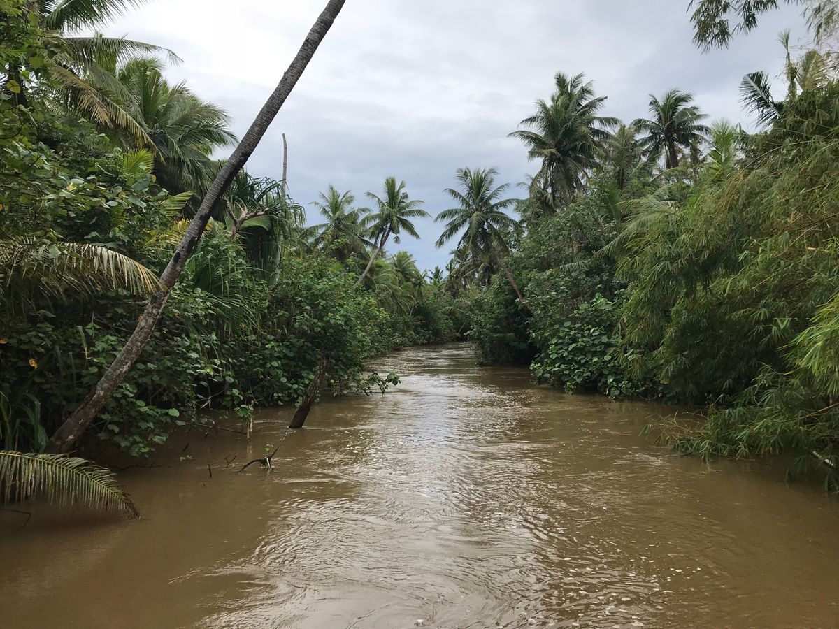 船での移動。イグアナ、水牛、カエルなどなどグアムの生き物が見られました。生き物好きの子どもは大喜びしていました。
