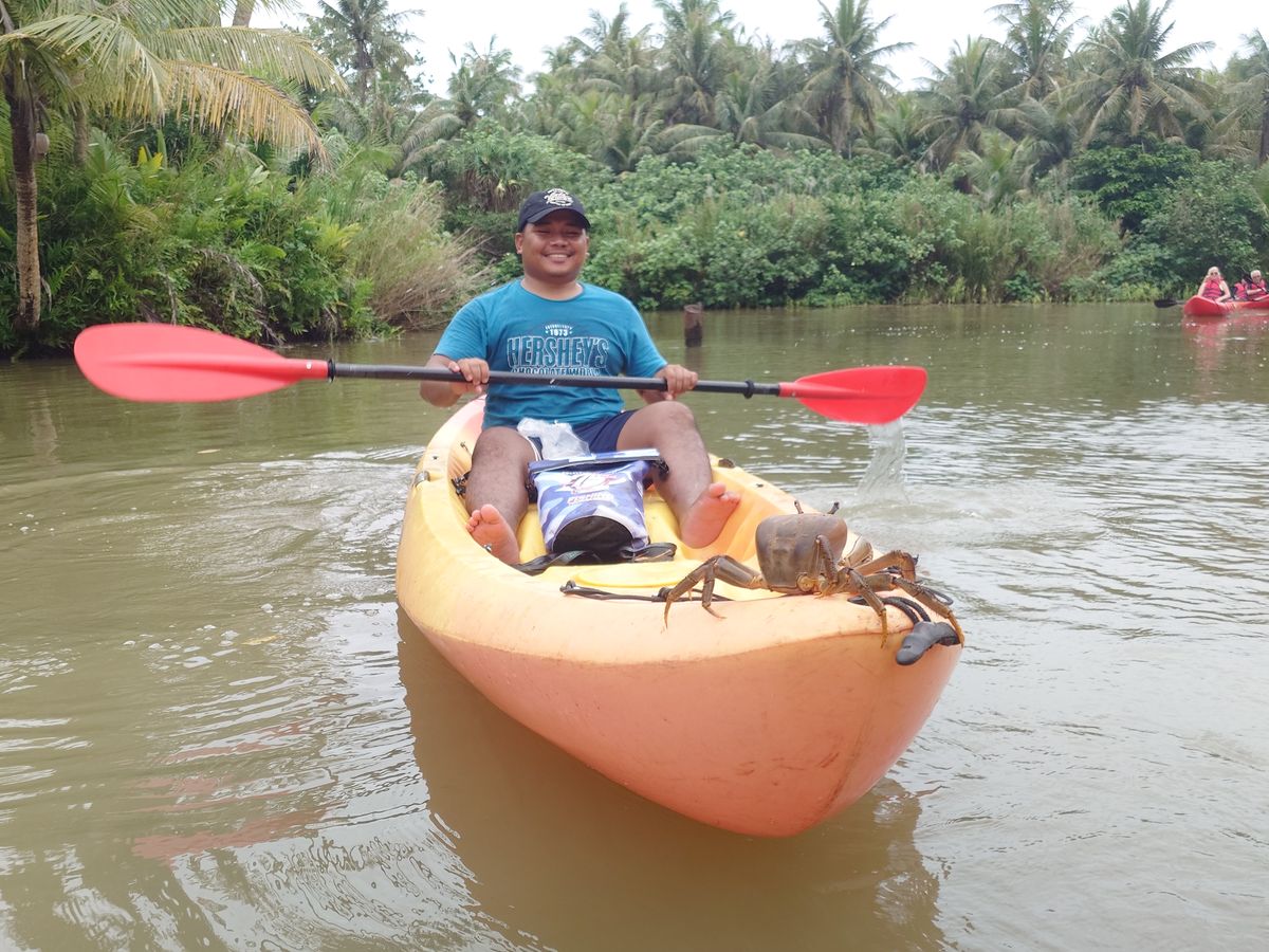 3人で参加しました。カヌーは2人一組のため、1人は他のグループの方と一緒にのりました。カヤックは遺跡まで。途中、カニなど自然の動物を数種類見ることができました。遺跡につくと植物の説明や昔の住居の作り等を見学と記念撮影。その後、火おこしや葉っぱで作った小物など昔の暮らしを見学。何名かは体験もしていました。ここで船のツアーの方達と合流でした。ランチを食べた後は動物等を見学しながら歩いて移動。葉っぱでエンゼルフィッシュをつくる体験を行い、全員船で元の場所に戻りました。川の水が思ったより茶色く驚きましたが、カヌー体験は楽しかったので小さなお子さんが居なければ船のツアーよりカヤックをお勧めします。ランチ、美味しかったです!