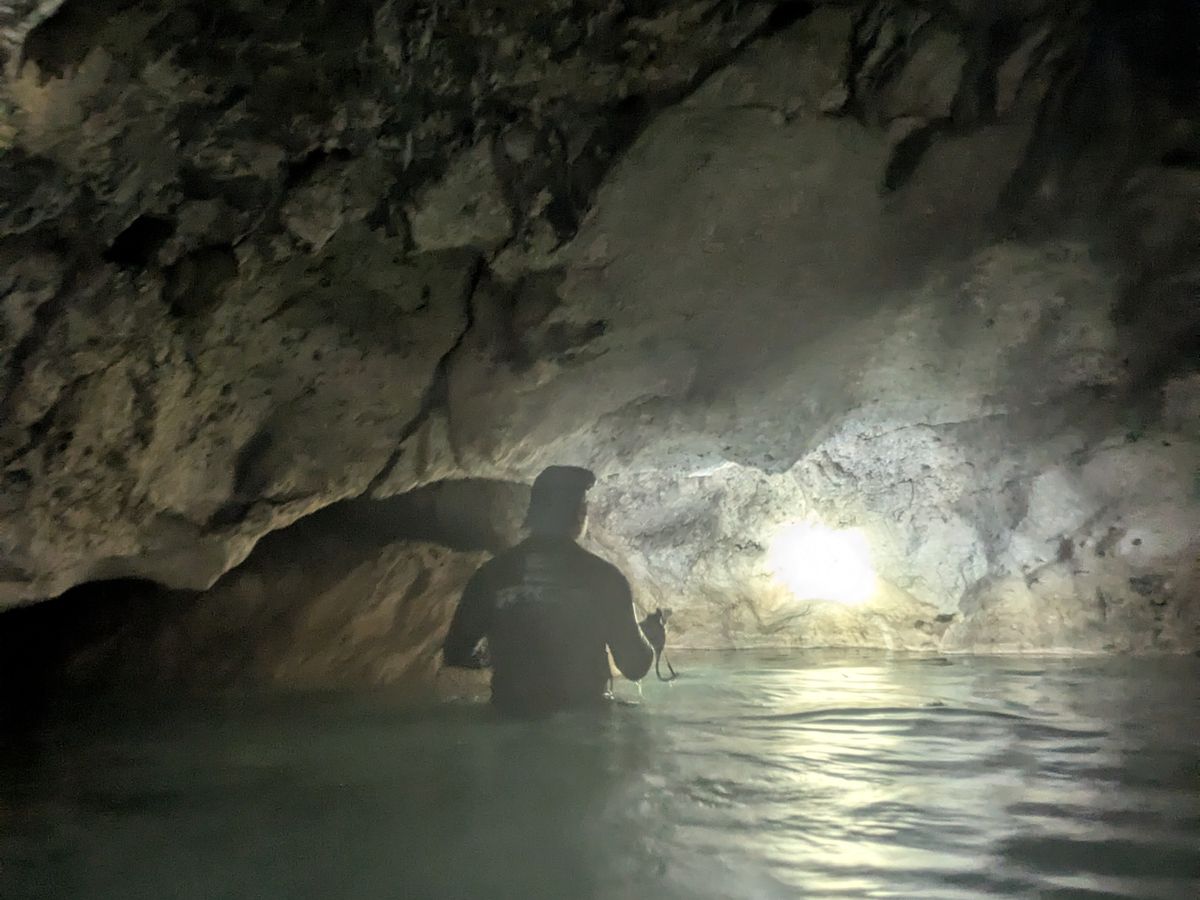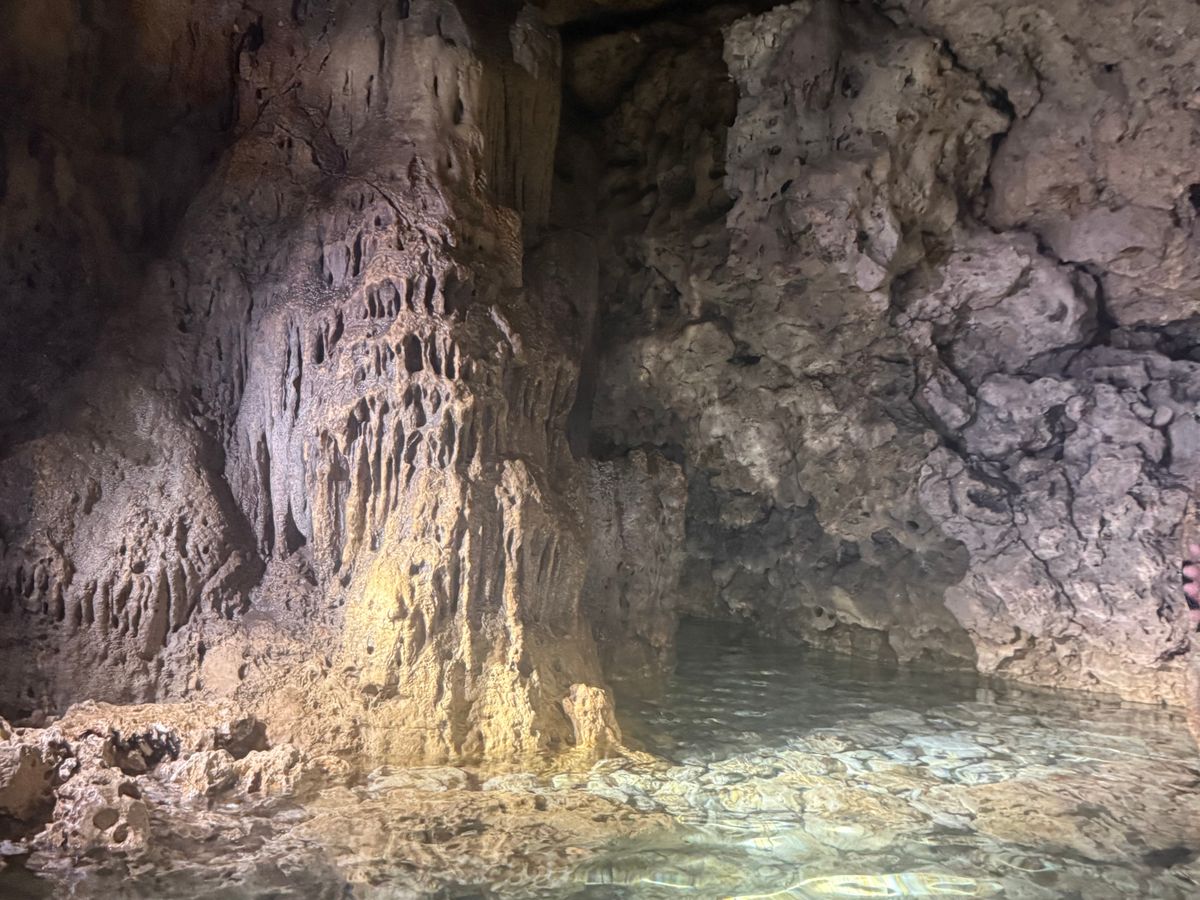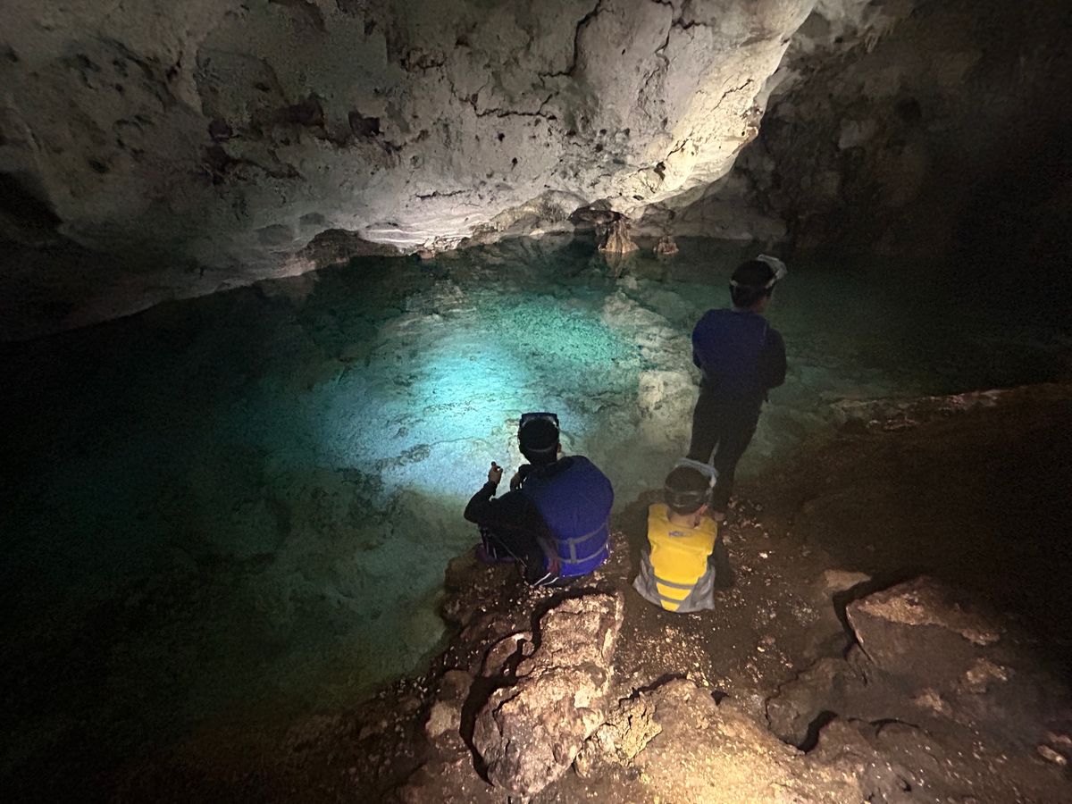 待ちに待ったケーブ内は鍾乳洞と綺麗な水の中を泳ぎました。